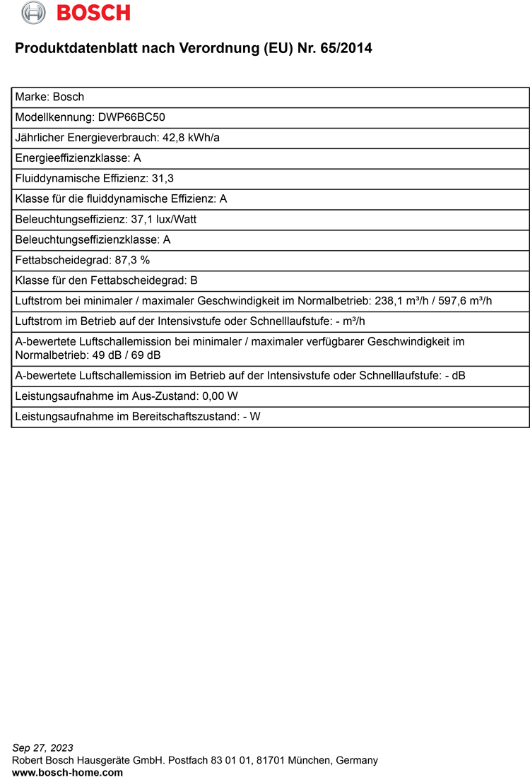 - Geräuschwerte nach EN 60704-2-13 max. Normalstufe Abluftbetrieb: Geräusch, höchste Normal-Stufe: 69 dB dB(A) re 1 pW