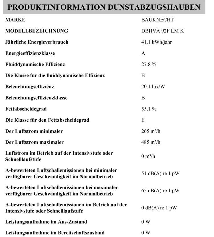 - Betriebsgeräusch im Abluftbetrieb: min. 51 – max. 64 dB(A)