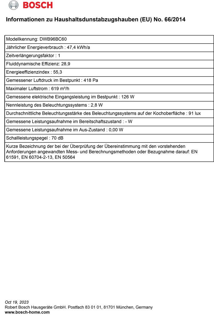 - Geräuschwerte nach EN 60704-2-13 max. Normalstufe Abluftbetrieb: Geräusch, höchste Normal-Stufe: 70 dB dB(A) re 1 pW