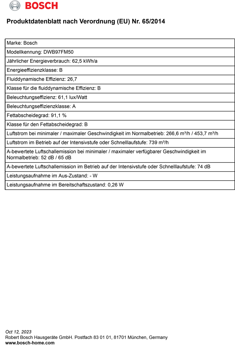 - Lüfterleistung nach EN 61591 bei Abluftbetrieb: Max. Normalstufe: 453m³/h, Intensivstufe: 739 m³/h