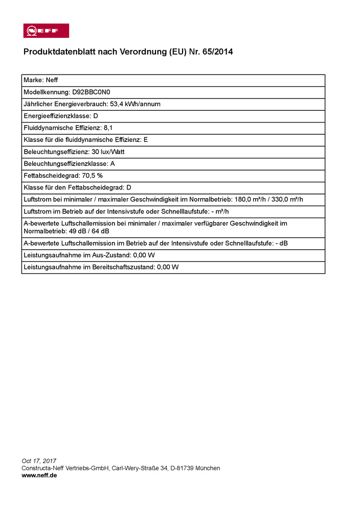 Artikelbezeichnung: Constructa-Neff Vertriebs-GmbH