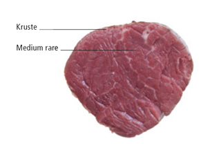Der letzte Schritt beim Sousvide-Garen: Das im Dampfgarer und Kochbeutel gegarte Produkt wird aus dem Vakuumbeutel entnommen, kurz in der Pfanne oder auf dem Grill angebraten und somit ein einzigartiges Genusserlebnis erreicht.