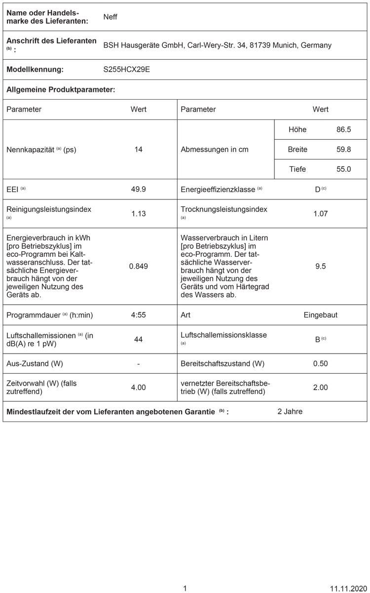 - Energie/Wasser²: 0.849 kWh / 9.5 l