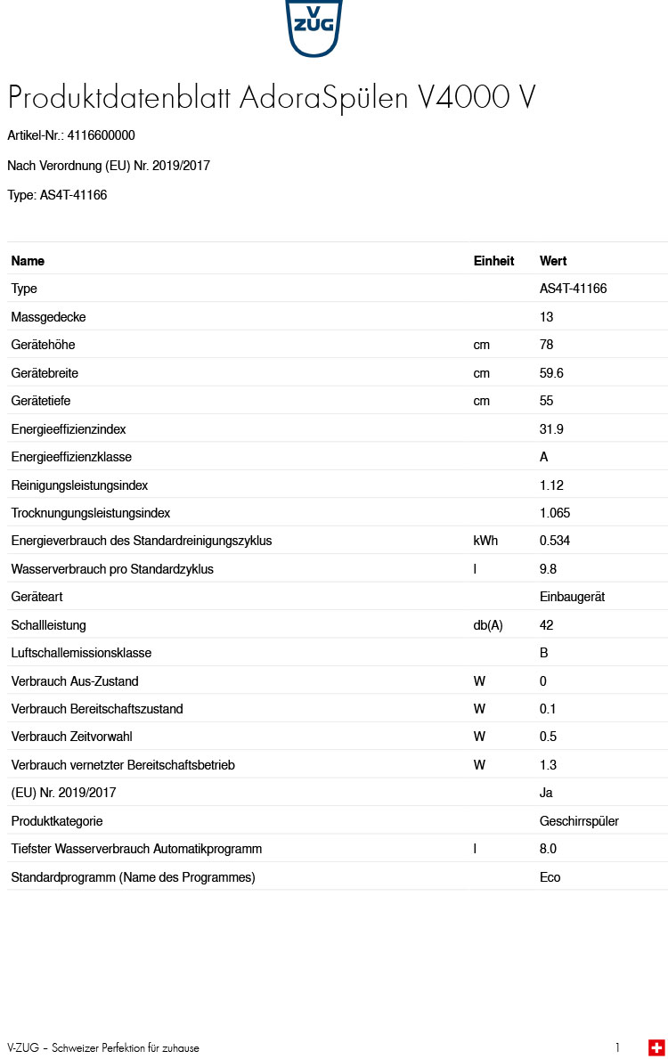 - Austausch gegen einen gleichwertigen oder neuen Artikel V-ZUG Adora V4000 V Geschirrspüler, vollintegrierbar, 4116600008 (ggf. auch ein Nachfolgemodell)