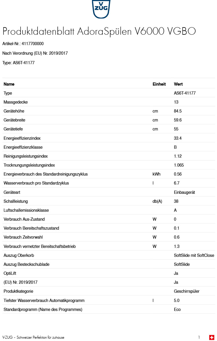 - Austausch gegen einen gleichwertigen oder neuen Artikel V-ZUG Adora V6000 VGBO Geschirrspüler, vollintegrierbar, 4117700006 (ggf. auch ein Nachfolgemodell)