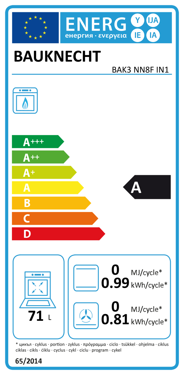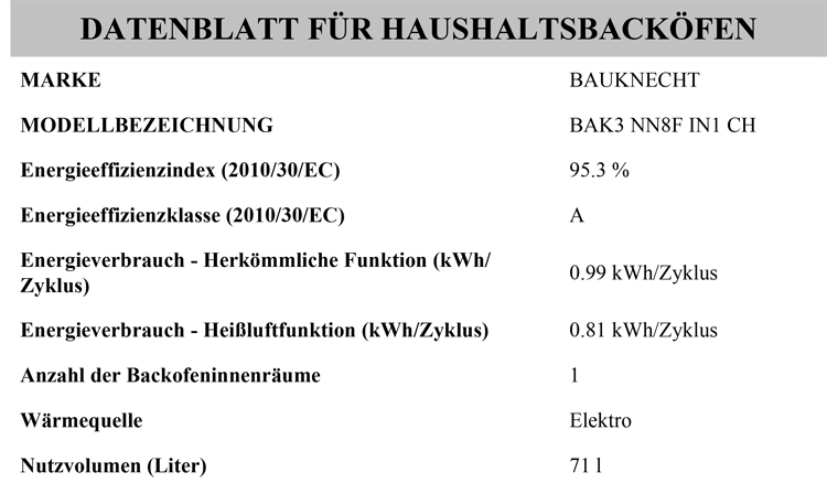 - Energieverbrauch nach DIN 0.81 kWh Umluft