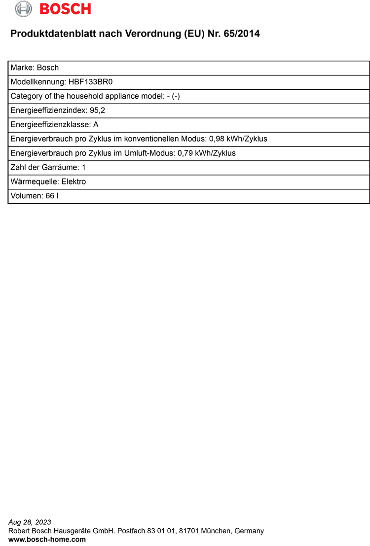 - Energieeffizienzklasse (gem. EU Nr. 65/2014): A (auf einer Energieeffizienzklassen-Skala von A+++ bis D)