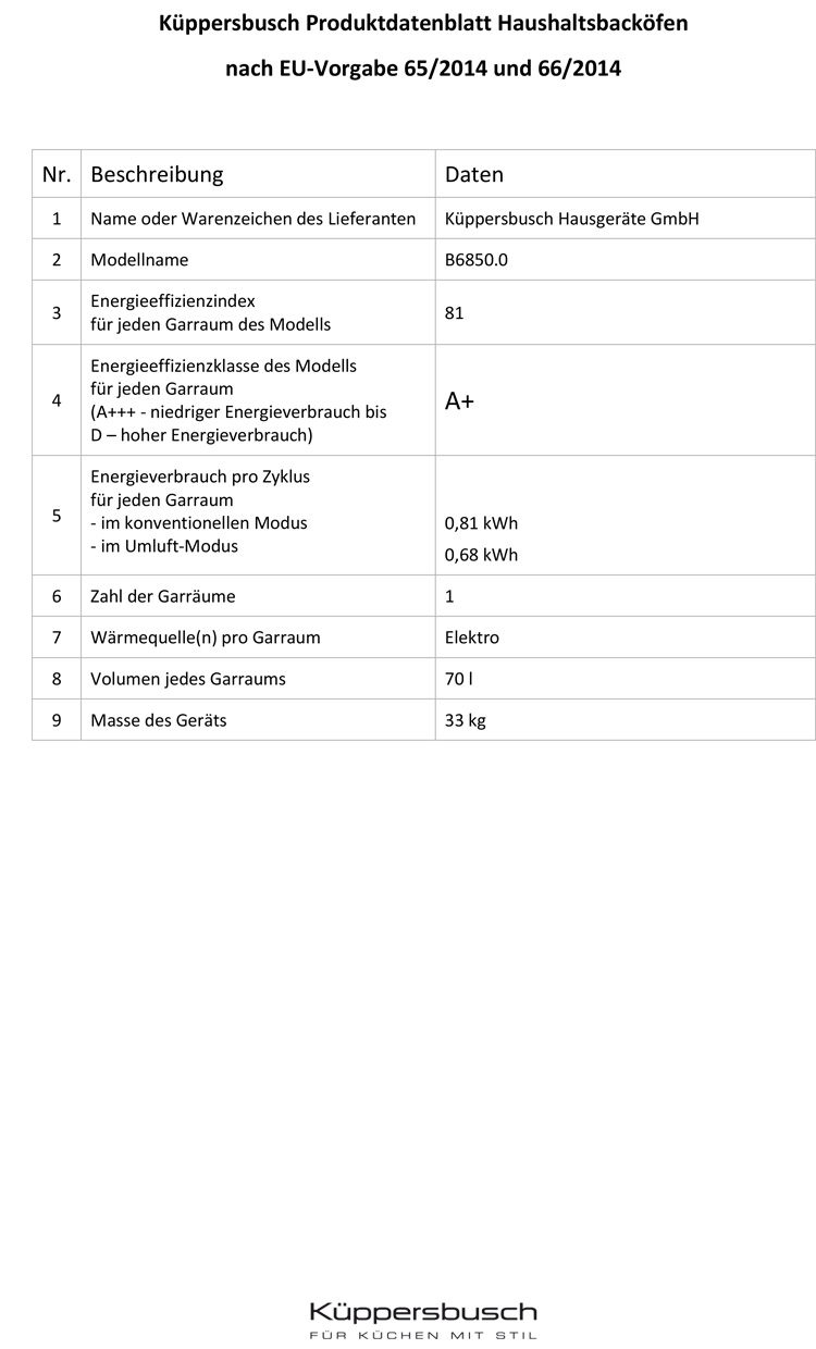 • Austausch gegen einen gleichwertigen oder neuen Artikel Küppersbusch B 6850.0 (ggf. auch ein Nachfolgemodell).