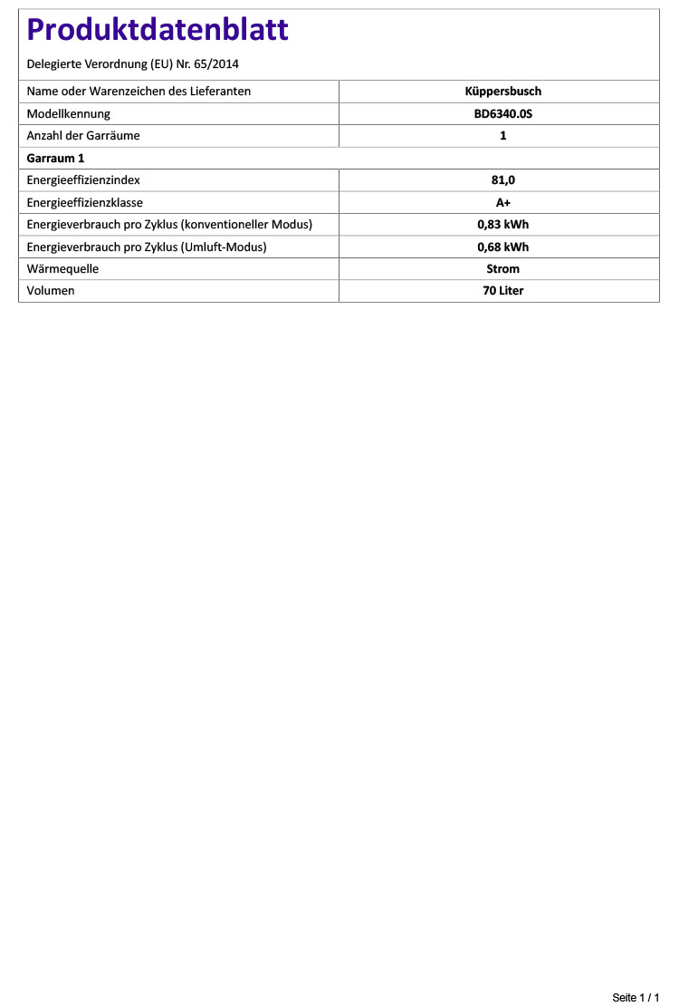 • Austausch gegen einen gleichwertigen oder neuen Artikel Küppersbusch BD 6340.0 (ggf. auch ein Nachfolgemodell).