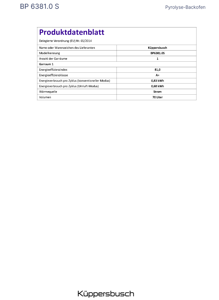 • Austausch gegen einen gleichwertigen oder neuen Artikel Küppersbusch BP 6381.0 (ggf. auch ein Nachfolgemodell).