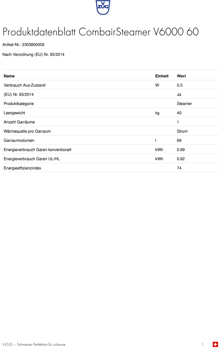 - Austausch gegen einen gleichwertigen oder neuen Artikel V-ZUG CombairSteamer V6000 60, Dampfbackofen, Spiegelglas, 2303800009 (ggf. auch ein Nachfolgemodell)