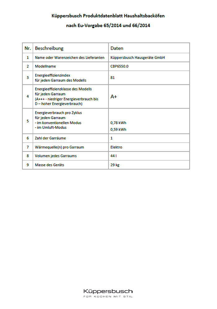 •    Austausch gegen einen gleichwertigen oder neuen Artikel Küppersbusch CBP 6550.0  (ggf. auch ein Nachfolgemodell).