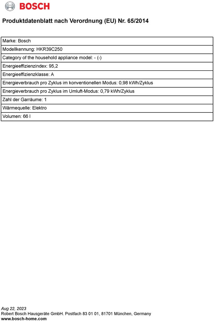 Artikelbezeichnung: Robert Bosch Hausgeräte GmbH
