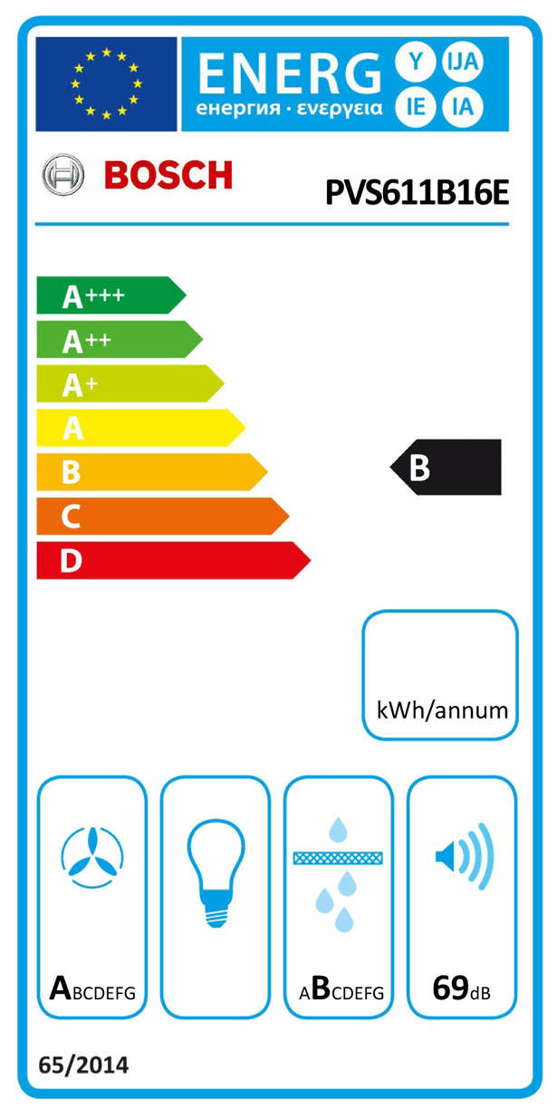 - Energie-Effizienzklasse: B (bei einer Skala der Energie-Effizienzklassen von A+++ bis D)