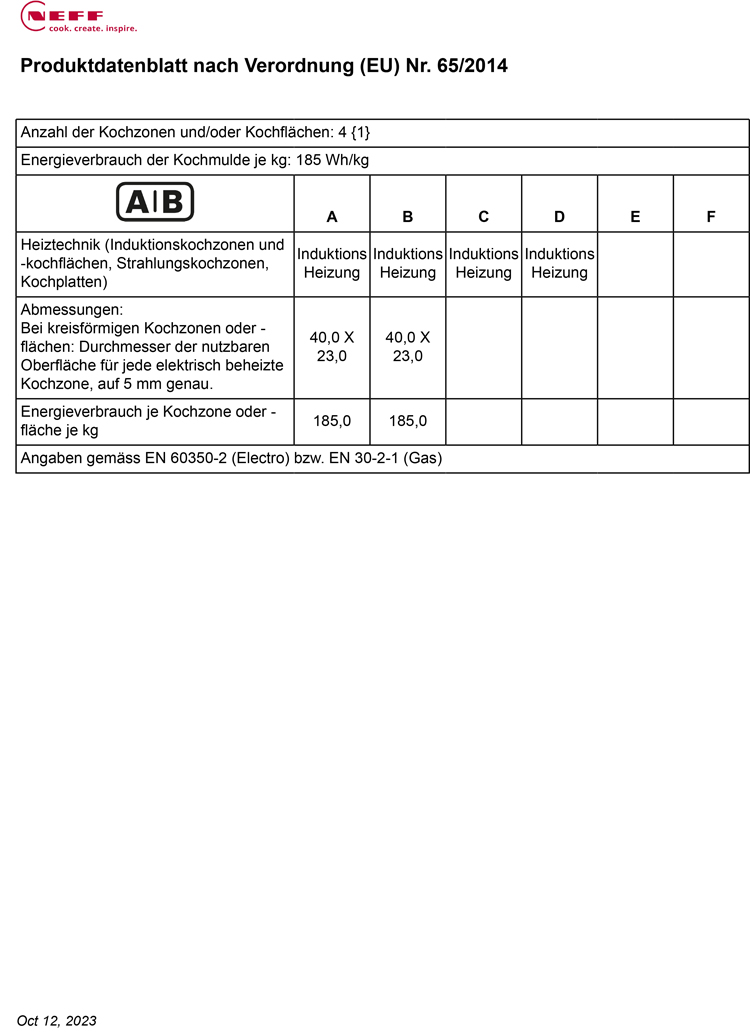Produktbezeichnung/-familie: Kochstelle Glaskeramik