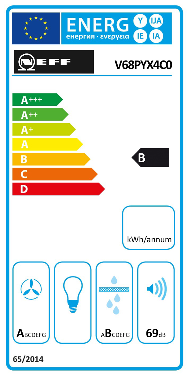 - Geräuschwerte bei Abluftbetrieb: min. Normalstufe 42 dB re 1 pW, max. Normalstufe 69 dB re 1 pW, max. Boost-/Intensivstufe 74 dB re 1 pWGeräuschwerte bei Umluftbetrieb: