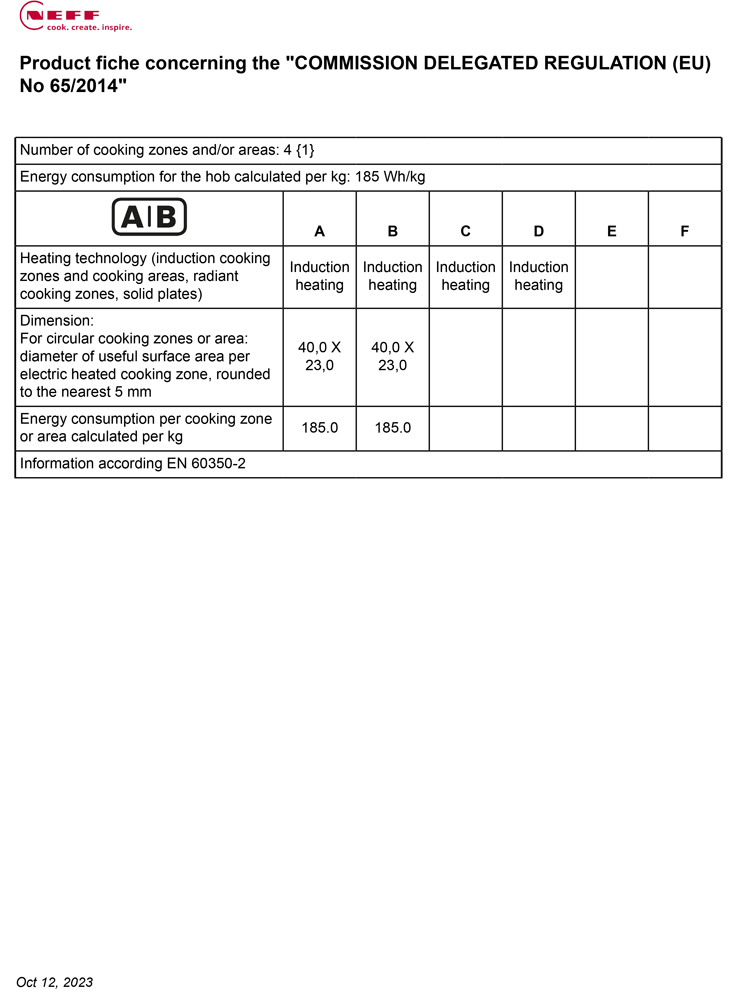 Produktbezeichnung/-familie: Kochstelle Glaskeramik