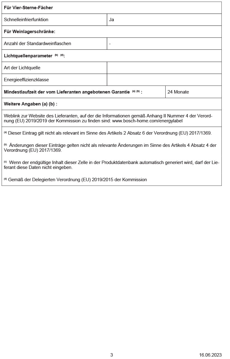 - Nutzinhalt Tiefkühlfächer: 70 l