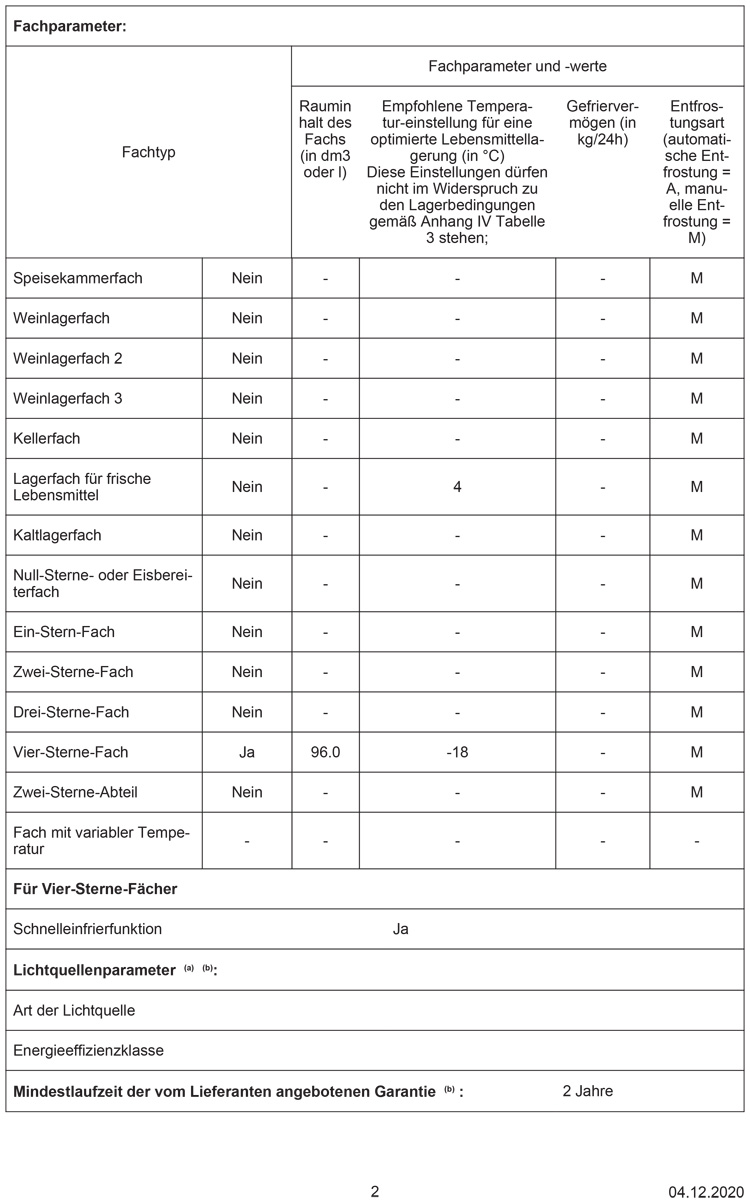 - Gefriervermögen: 8 kg in 24 Std.