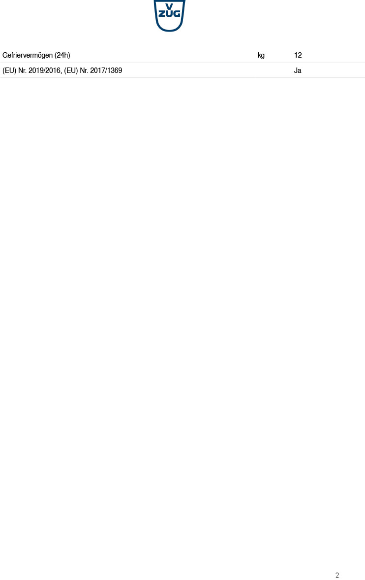 - Gefrierkapazität Fach 1 (kg/24h): 12.0 kg/24h