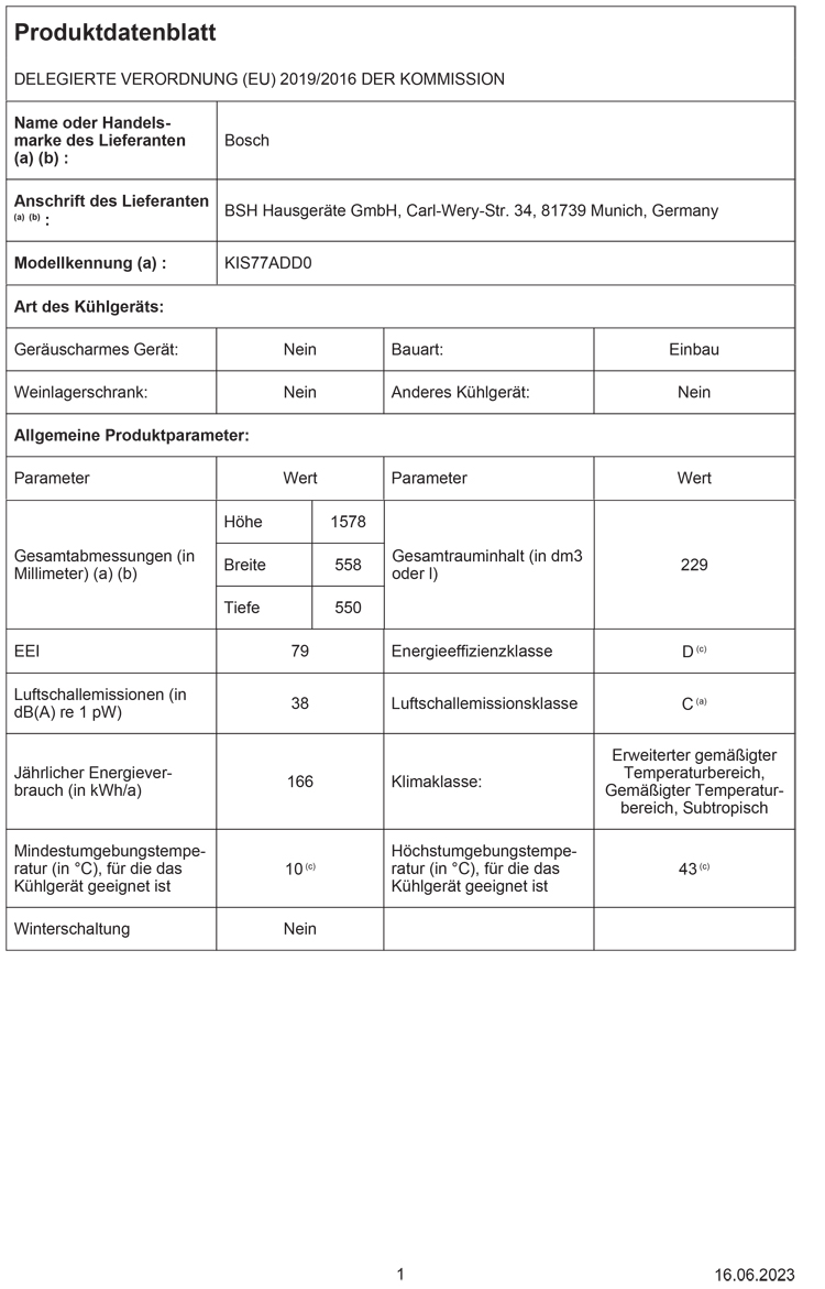 - Durchschnittlicher Energieverbrauch in Kilowattstunden pro Jahr (kWh/a): 166 kWh/annum