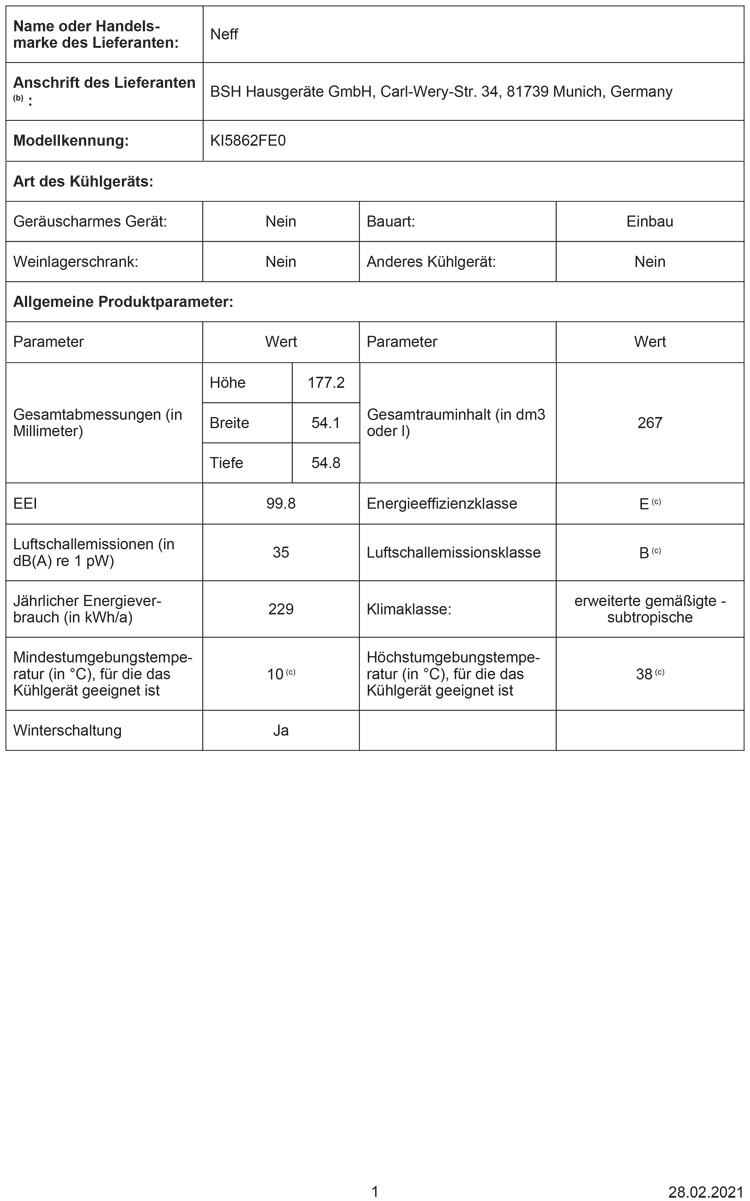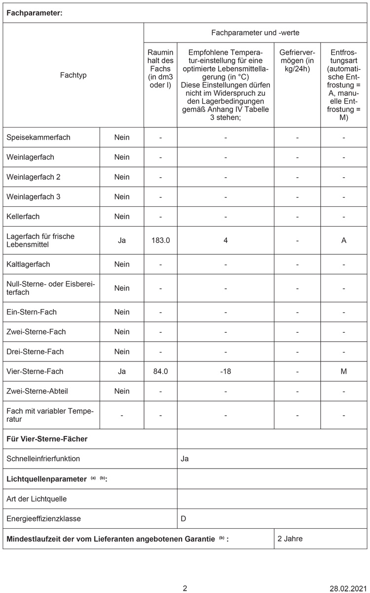 - Kühlraum: 183 l Nutzinhalt