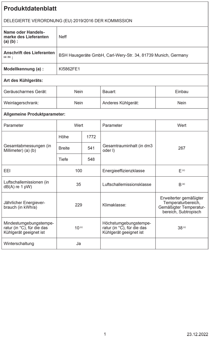 - Kühlraum: 183 l Nutzinhalt