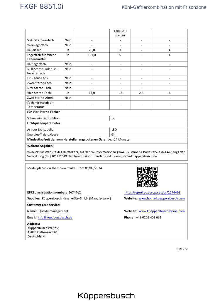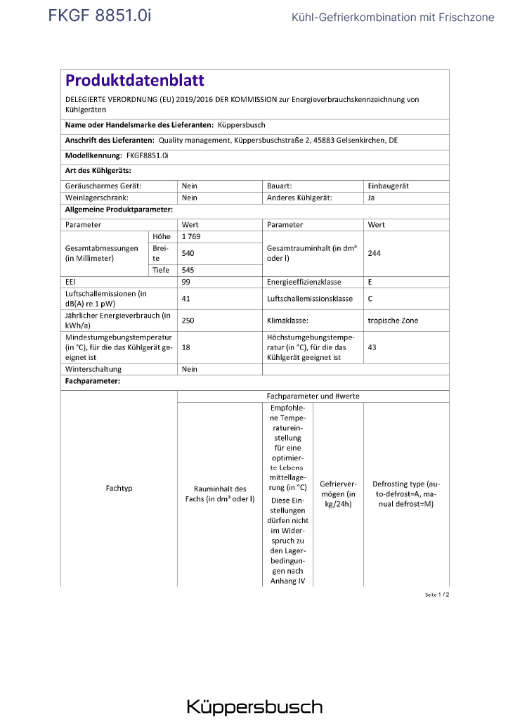 • Austausch gegen einen gleichwertigen oder neuen Artikel Küppersbusch FKGF 8851.0i (ggf. auch ein Nachfolgemodell).
