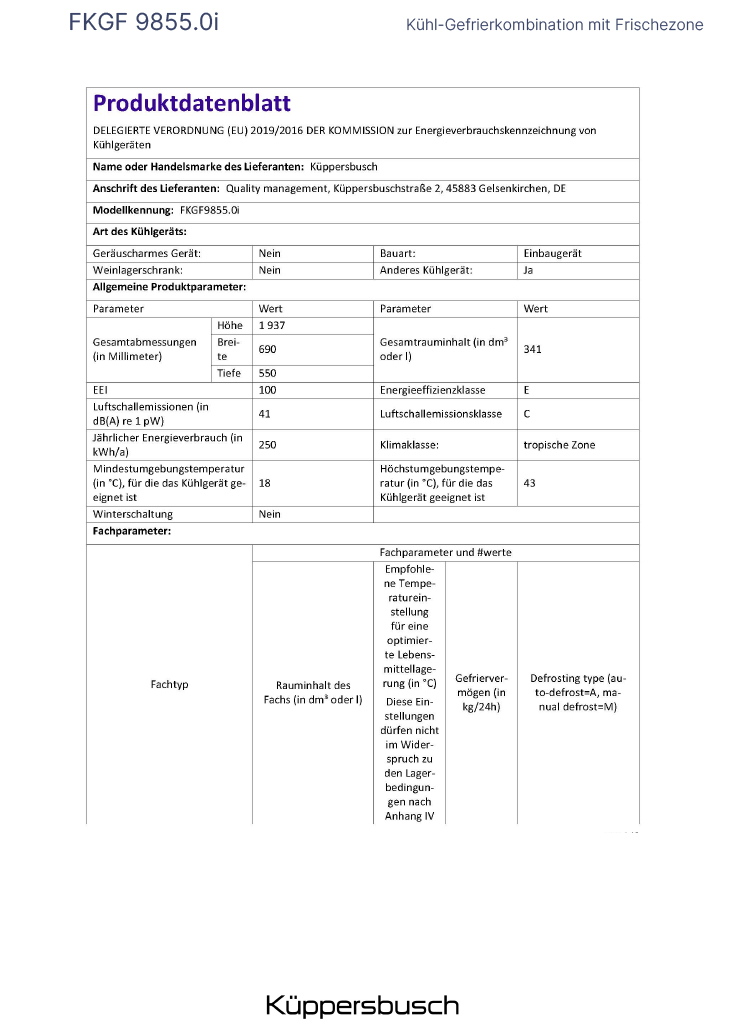 • Austausch gegen einen gleichwertigen oder neuen Artikel Küppersbusch FKGF 9855.0i (ggf. auch ein Nachfolgemodell).