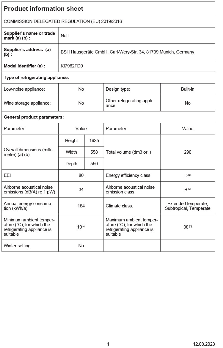 - Energie-Effizienz-Klasse: D auf einer Skala von A (höchste Effizienz) bis G (geringste Effizienz)
