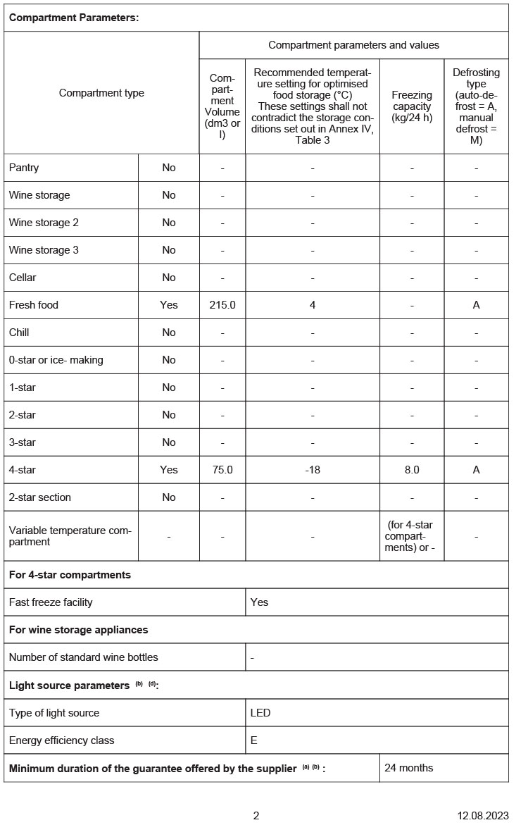 - Nutzinhalt Tiefkühlfächer: 75 l