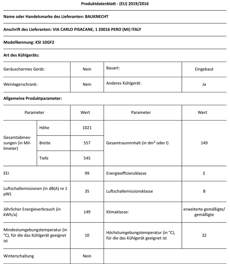 - Nutzinhalt: 131 l Kühlen, 18 l Gefrieren, gesamt 149 l