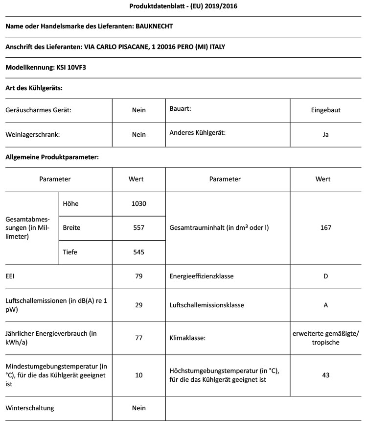 - Energieverbrauch: 77 kWh/Jahr