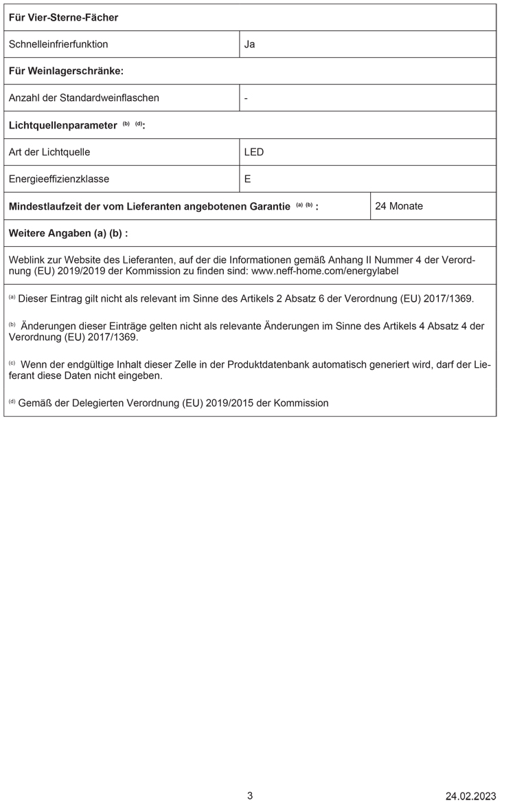 - Gefriervermögen: 3 kg in 24 Std.