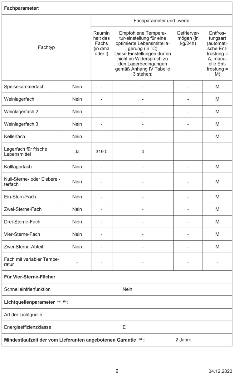 - Energie-Effizienz-Klasse: E auf einer Skala von A (höchste Effizienz) bis G (geringste Effizienz)