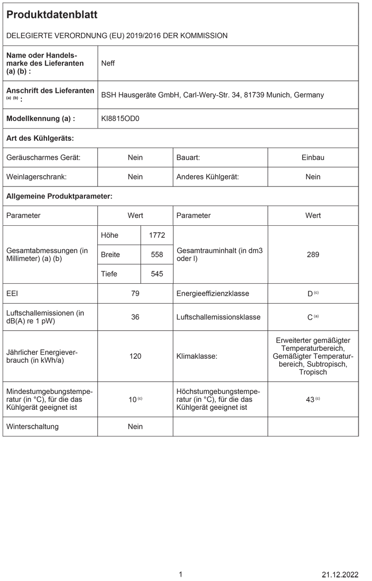 - Energie-Effizienz-Klasse: D auf einer Skala von A (höchste Effizienz) bis G (geringste Effizienz)