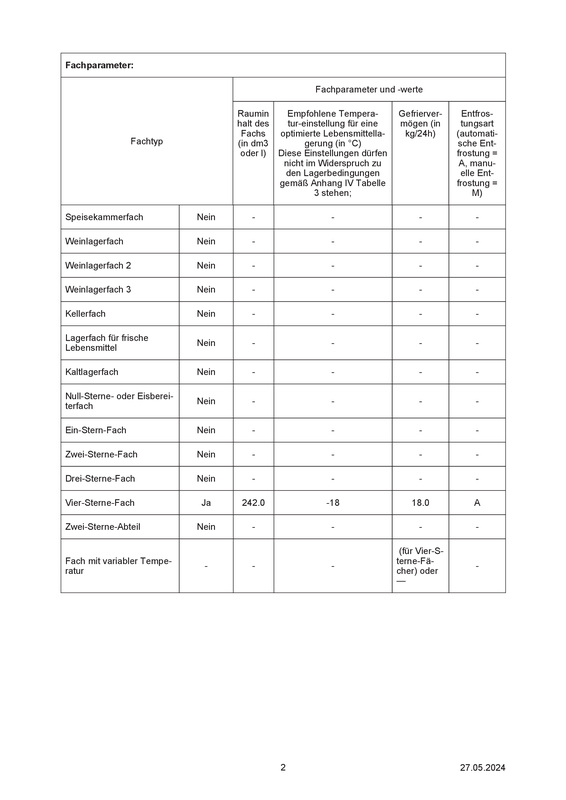 - Durchschnittlicher Energieverbrauch in Kilowattstunden pro Jahr (kWh/a): 234 kWh/annum