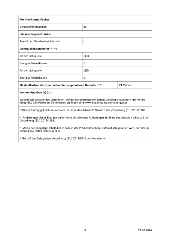 - Nutzinhalt Tiefkühlfächer: 199 l
