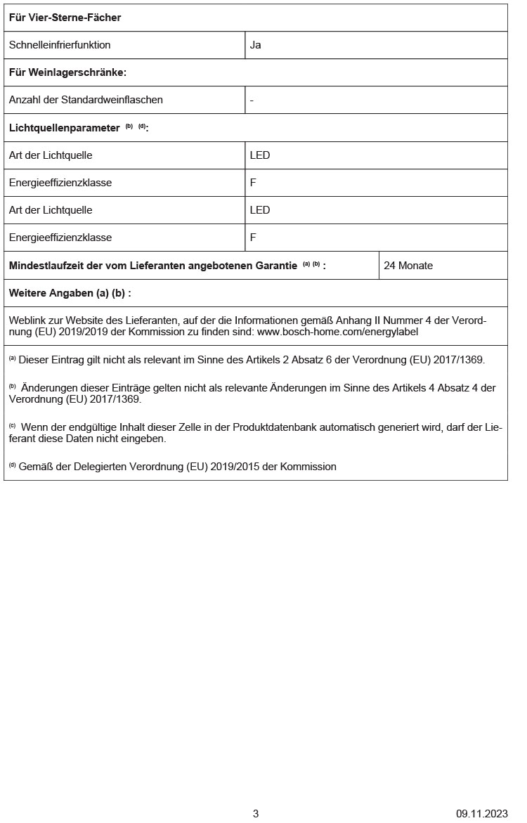 - Nutzinhalt Tiefkühlfächer: 120 l