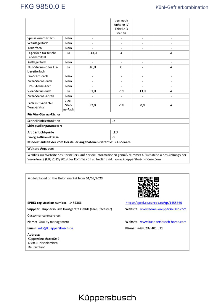 • Austausch gegen einen gleichwertigen oder neuen Artikel Küppersbusch FKG 9850.0 E (ggf. auch ein Nachfolgemodell).