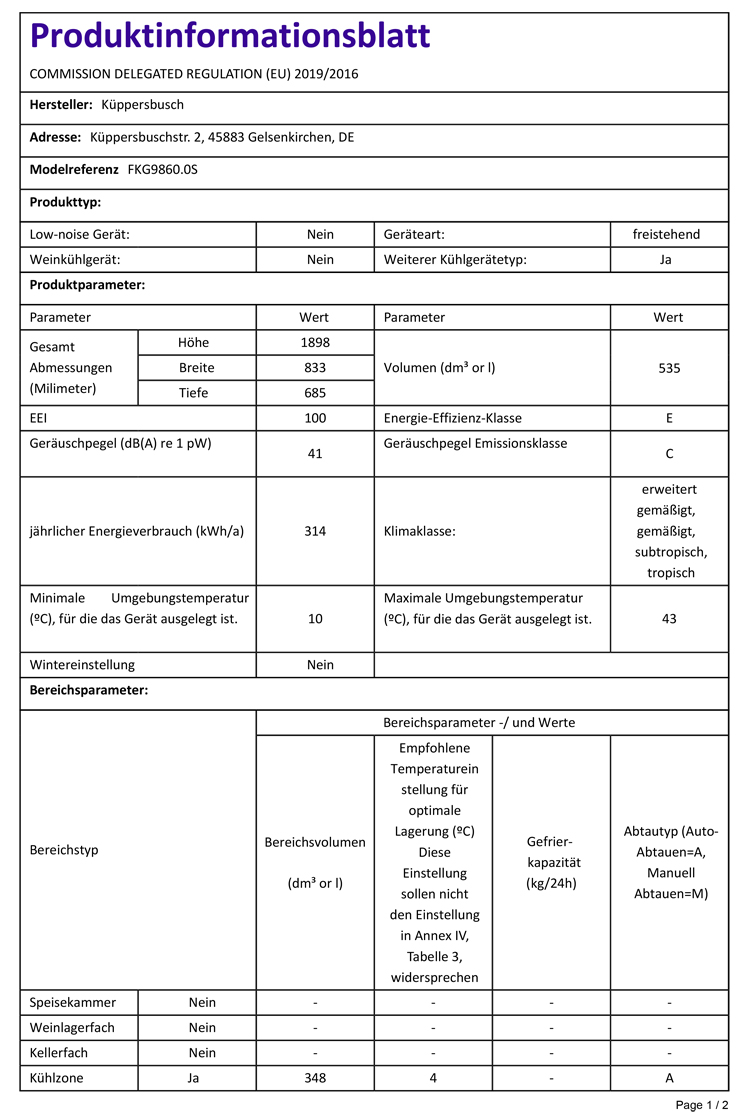• Austausch gegen einen gleichwertigen oder neuen Artikel Küppersbusch FKG 9860.0 S (ggf. auch ein Nachfolgemodell).
