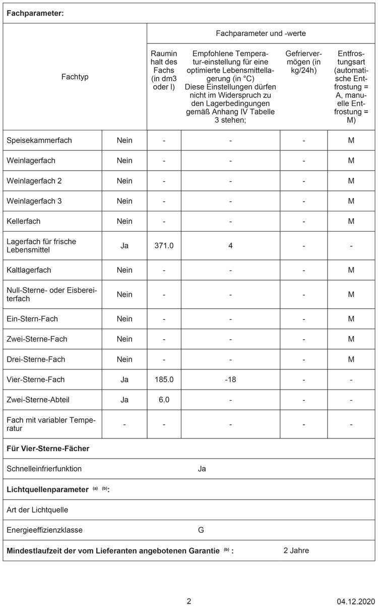 - Energie-Effizienz-Klasse: E auf einer Skala von A (höchste Effizienz) bis G (geringste Effizienz)