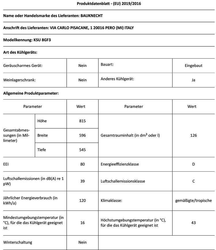 - Nutzinhalt: 108 l Kühlen, 18 l Gefrieren, gesamt 126 l