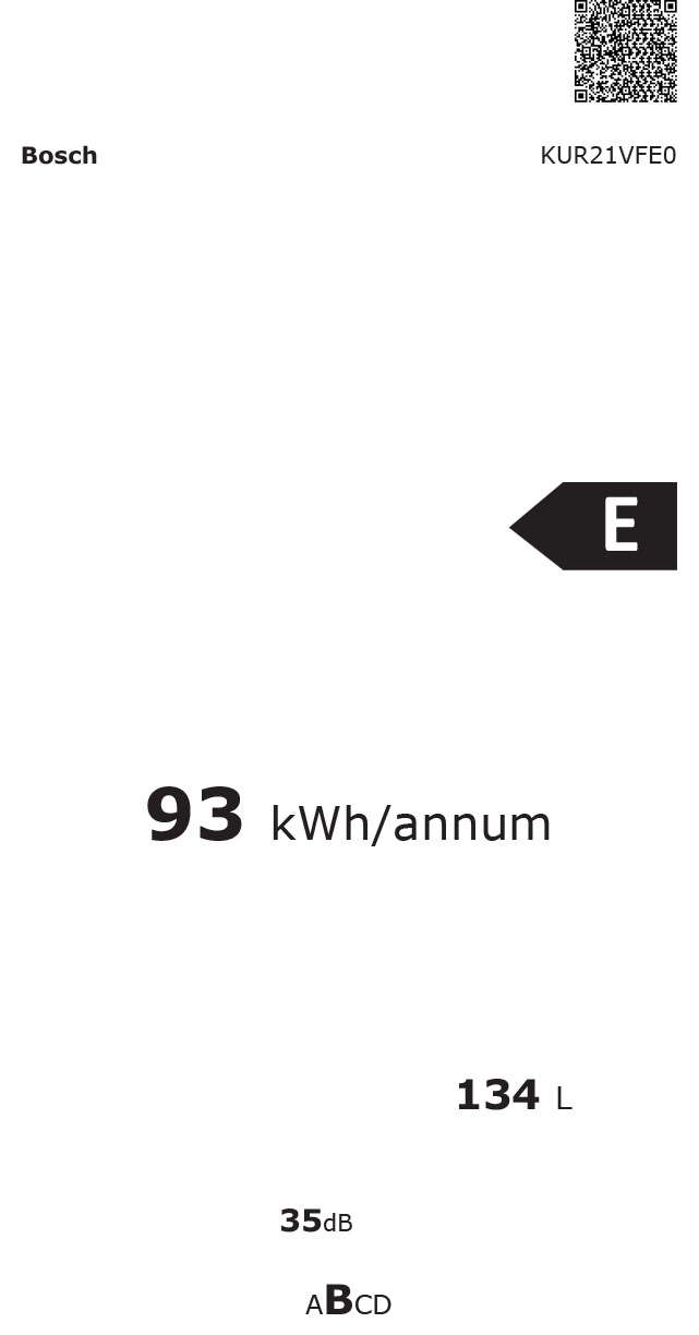 - Durchschnittlicher Energieverbrauch in Kilowattstunden pro Jahr (kWh/a): 93 kWh/annum
