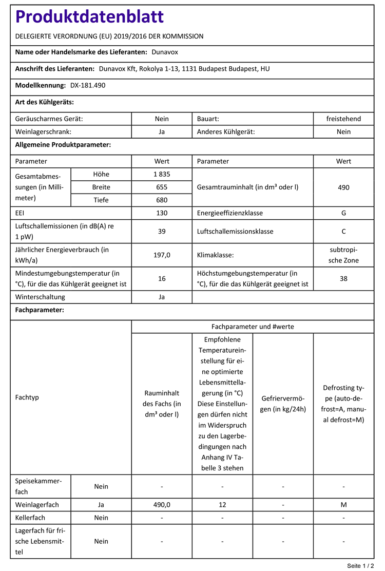 - Kapazität Flaschen: 181 (0,75l Bordeaux)