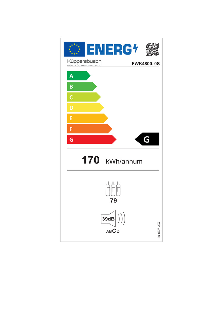 Jährlicher Energieverbrauch 170 kWh/Jahr, auf der Grundlage von Ergebnissen der Normprüfung über 24 Stunden. Der tatsächliche Verbrauch hängt von der Nutzung und vom Standort des Geräts ab.