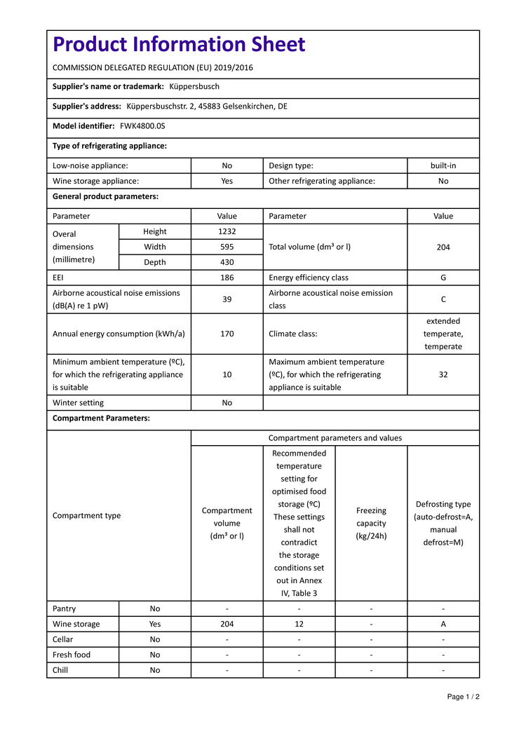 • Austausch gegen einen gleichwertigen oder neuen Artikel Küppersbusch FWK 4800.0 (ggf. auch ein Nachfolgemodell).