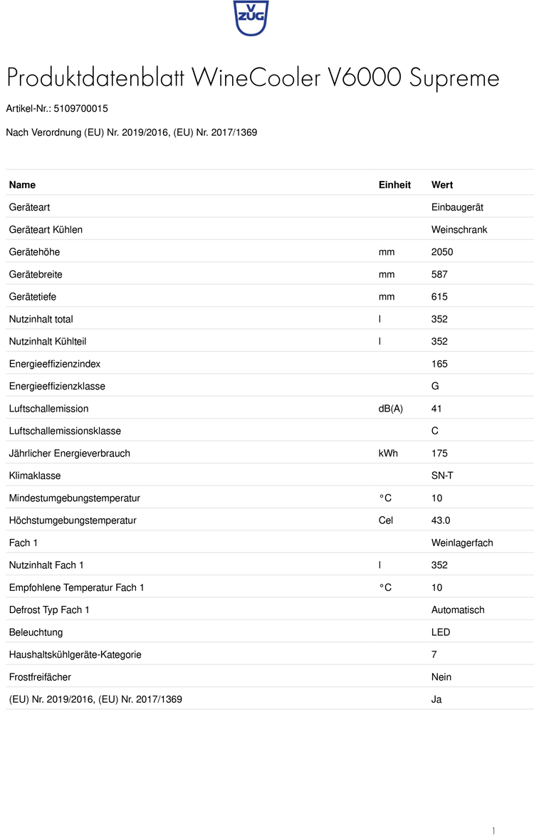 - Austausch gegen einen gleichwertigen oder neuen Artikel V-ZUG Winecooler V6000 Supreme, Einbau Weinkühlschrank, 5109700015 (ggf. auch ein Nachfolgemodell)