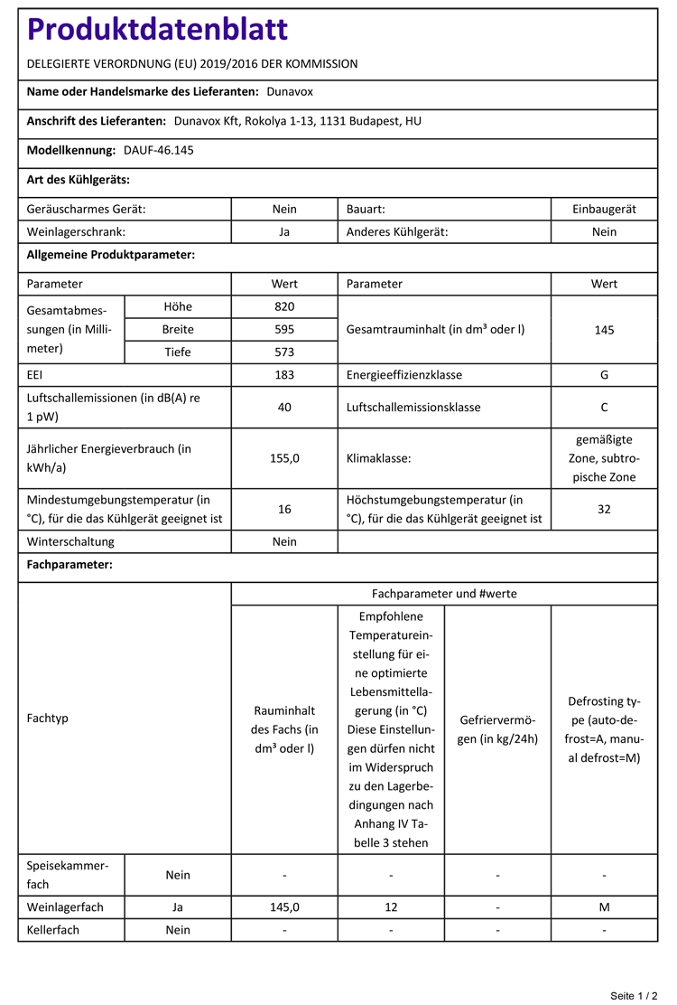 - Jahresverbrauch gilt bei Voraussetzung einer Umgebungstemperatur von 25°C und einer Betriebstemperatur von ≥4°C.
