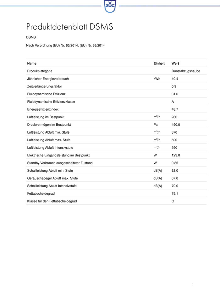 - Geräuschepegel Abluft max. Stufe: 67.0 dB(A)